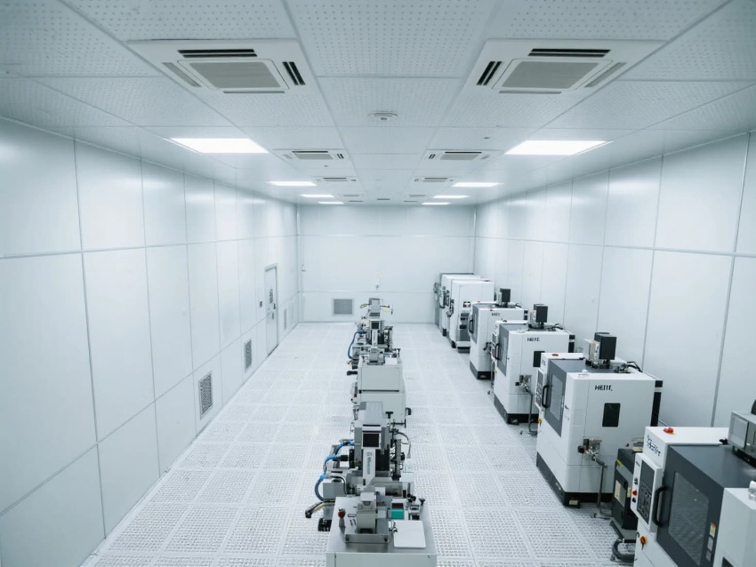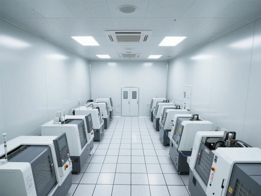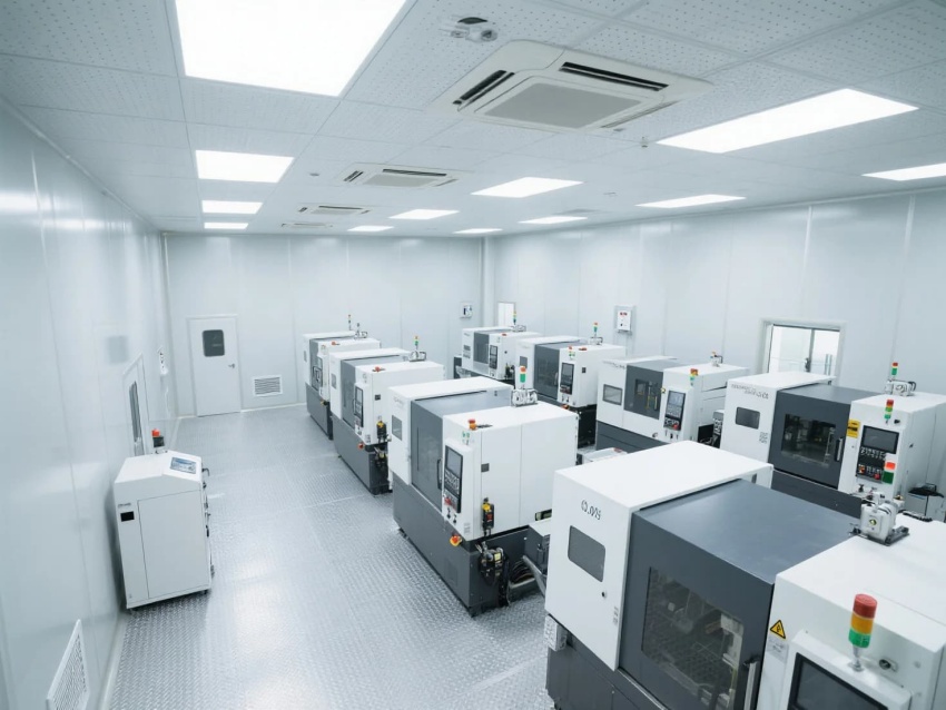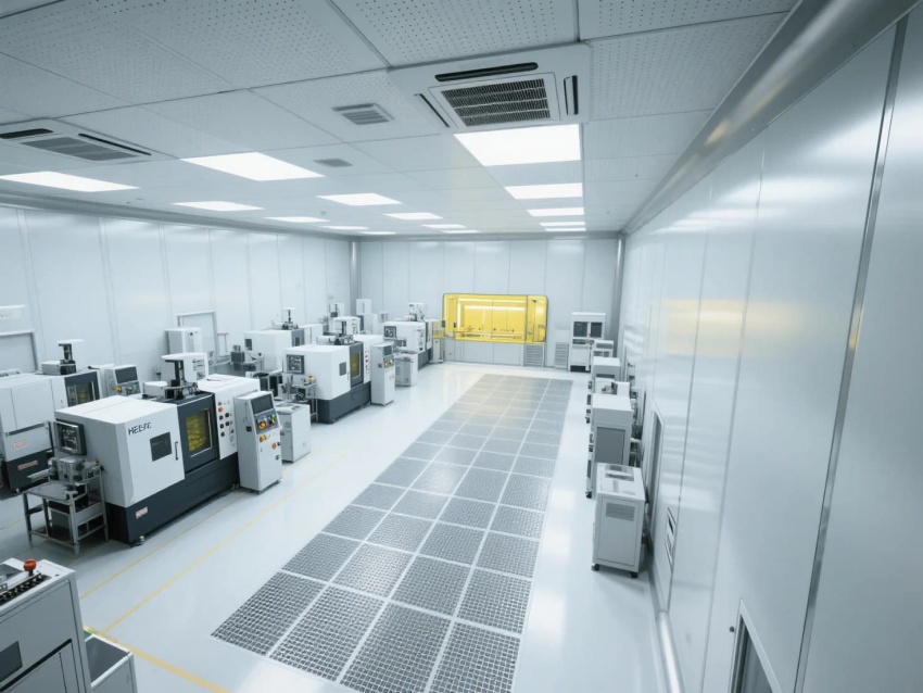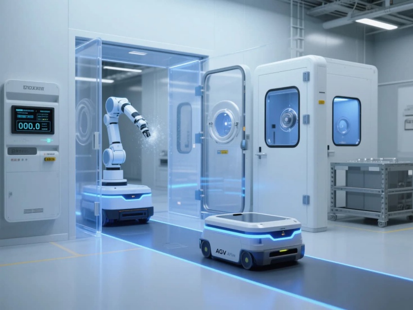 模塊化功能單元:劃分微米級加工區(qū)(黃光照明)、光學(xué)檢測區(qū)(黑箱設(shè)計)、物料緩存區(qū)(負壓隔離)
