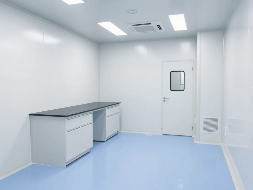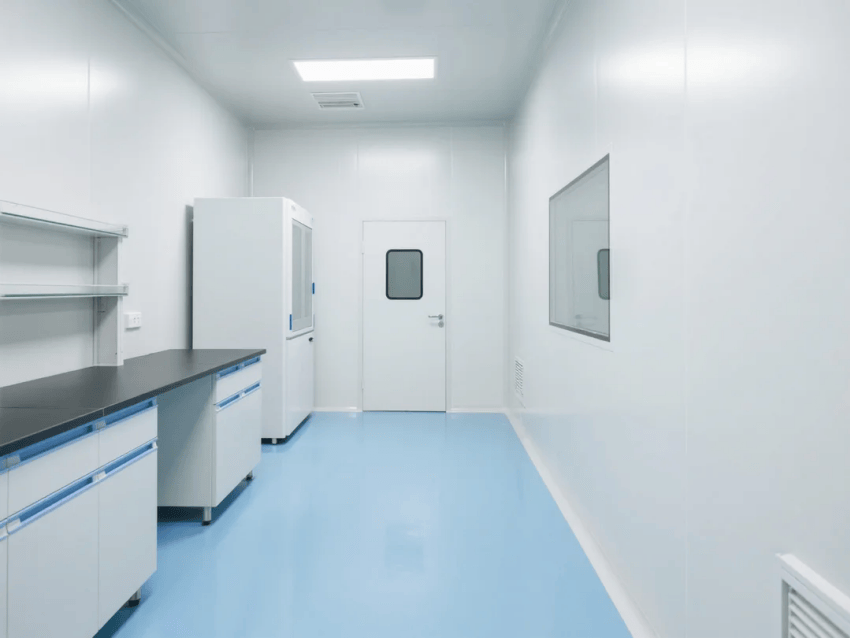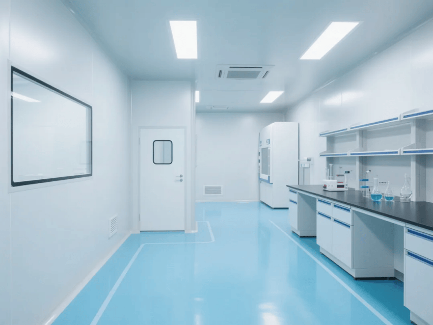 本方案采用生物科技極簡風格,嚴格遵循ISO14644-1Class6潔凈標準??臻g以純白抗菌彩鋼板墻體與淺藍環(huán)氧樹脂地坪構(gòu)建主體框架,營造純凈、高效的檢測環(huán)境。墻體采用50mm厚醫(yī)療級抗菌彩鋼板,所有接縫處采用R30mm圓弧處理工藝,確保無衛(wèi)生死角。淺藍環(huán)氧地坪添加防滑顆粒,摩擦系數(shù)≥0.6,同時具備優(yōu)異的耐化性。