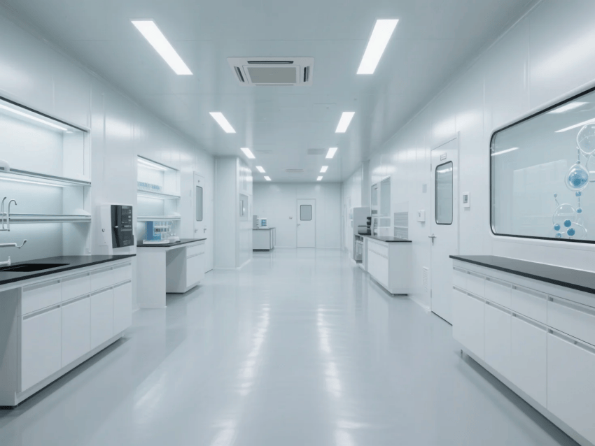 本實驗室嚴(yán)格遵循《生物安全實驗室建筑技術(shù)規(guī)范》GB50346標(biāo)準(zhǔn),以"科技純凈"為設(shè)計理念,通過象牙白彩鋼板墻體與淺灰環(huán)氧樹脂地坪的極簡組合,打造符合P2防護(hù)要求的現(xiàn)代化研發(fā)空間。