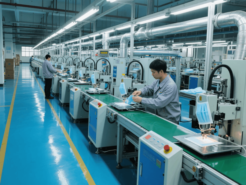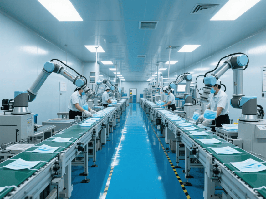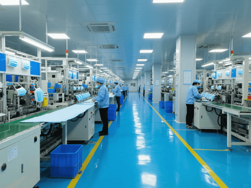 本方案采用"醫(yī)療工業(yè)極簡風(fēng)",符合YY/T0969-2013口罩行業(yè)標(biāo)準(zhǔn)。車間按功能分區(qū):